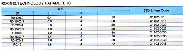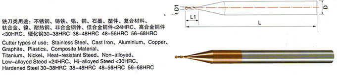 整體硬質(zhì)合金微小徑2刃球頭銑刀說明: