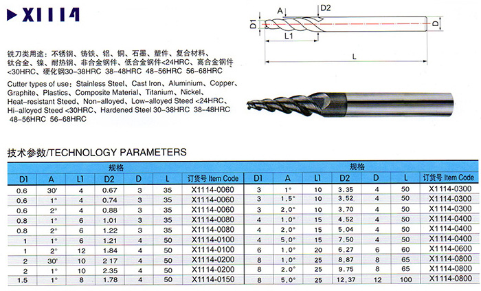 整體硬質(zhì)合金四刃錐度銑刀說明: