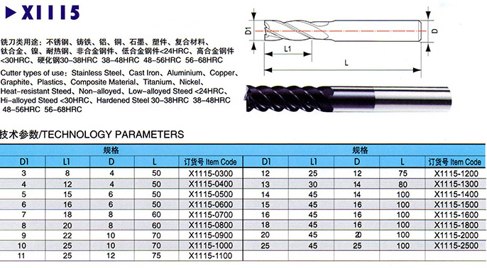 整體硬質(zhì)合金大螺旋銑刀(三、四刃)說明: