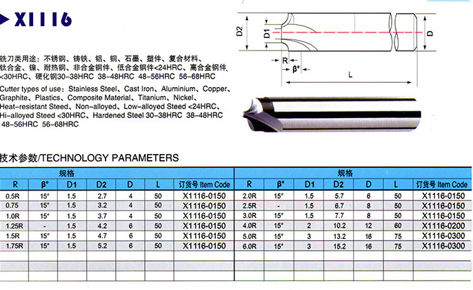 整體硬質合金內R銑刀-2刃說明: